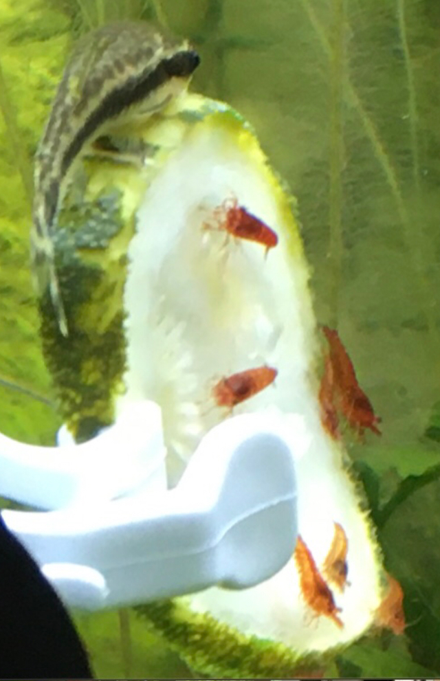ich finde es immer toll, wenn meine Garnelen den Fütterungsplan ändern und sich über Futter hermachen, dass nicht für sie gedacht ist. Babyfutter - wurscht. Grünzeug für Otttos - wurscht. Es wird alles gefuttert, was es gibt. Die reinste Party.