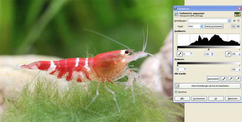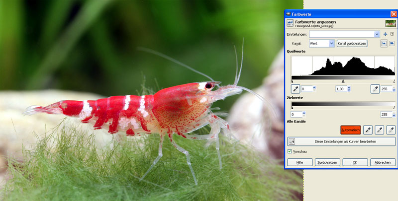 Step2. Farbe ca 8–9 % hochziehen da durch den Blitz die Farbe etwas schwindet.