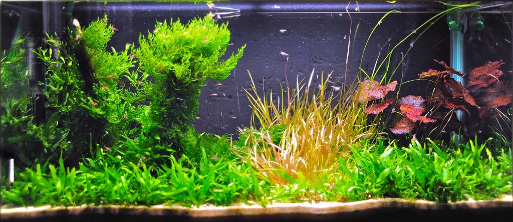 ich möchte hier mein Shieling vorstellen, die Aufnahmen wurden vor ca. 6 Wochen gemacht. Als Bodengrund verwende ich Aquasoil. Beleuchtet wird mit 18Watt Lichtfarbe 865 was weitgehend Tageslicht entspricht. Gefiltert wird mit einem alten Eheim Topffilter. Co2 wird mittels Diffusor eingebracht. Vor ein paar Wochen sind schwarze Tigergarnelen vom tutti eingezogen. Allerdings waren beim Fototermin noch Fische und CPO's in dem Becken. Jetzt nur mehr Tigergarnelen....ich muss bei Gelegenheit neue Bilder machen.