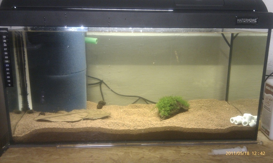 Hier mal die Daten: Das Becken ist ein Standard 54Liter Becken, der Bodengrund ist Manado und das Becken ist gefüllt mir aufgehärtetem VE-Wasser. Ich hab diesmal bewusst auf Leitungswasser verzichtet.
