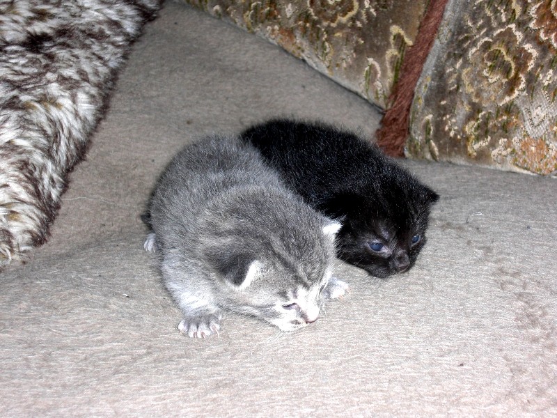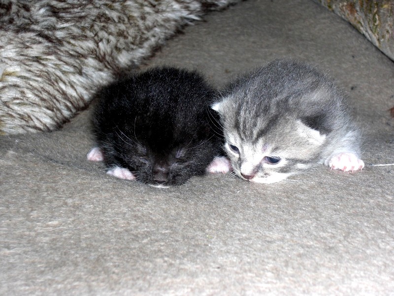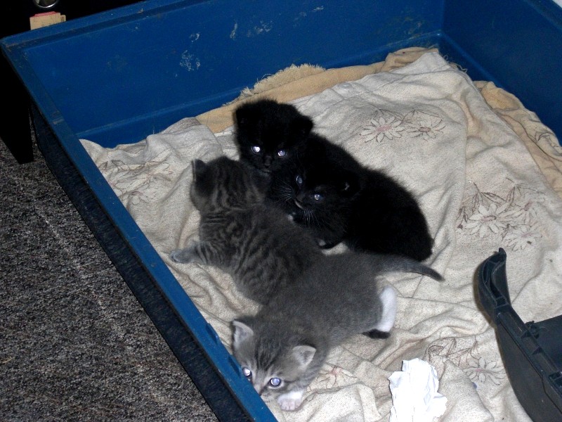 Irgendwie ist das alles etwas früh, aber nun gut, wenn sie so weiter machen sind sie in wenigen Tagen aus dem Karton raus, ab und an versuchen sie es schon... und fauchen tun sie auch. :saint: :D