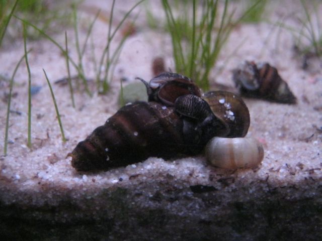 wieder was neues!.Als ich vor 10 Tagen,das erste mal die Schnecken beim paaren erwischen konnte,habe ich dieses Pärchen separat in ein neu aufgesetztes Aquarium gesetzt.Es ist später erneut zu einer Paarung gekommen.