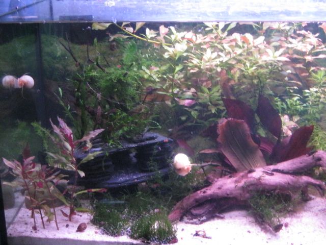 habe mal eine Gesamtansicht geknipst,von dem Aquarium und dann 3 etwas größere Einblicke.