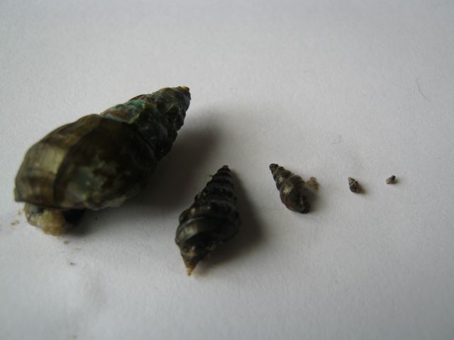Was mich allerdings wundert ist,das ich wieder ganz junge Minis entdeckt habe,ich habe es mit viel vorsicht geschafft so ein kleines Ding zu fangen und auf einem Stück Papier zu legen und 4 weitere Größen.(die 2 letzten bzw die Größten Schnecken sind in dieser Größe zu mir gekommen und der Rest ist alles von diesem Jahr)