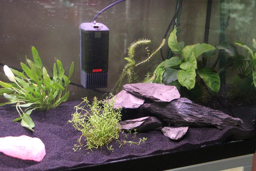 Der kleine Eheim-Filter bleibt nur die erste Zeit drin wegen der Bakterien (auch aus dem kleinen Übergangsbecken).