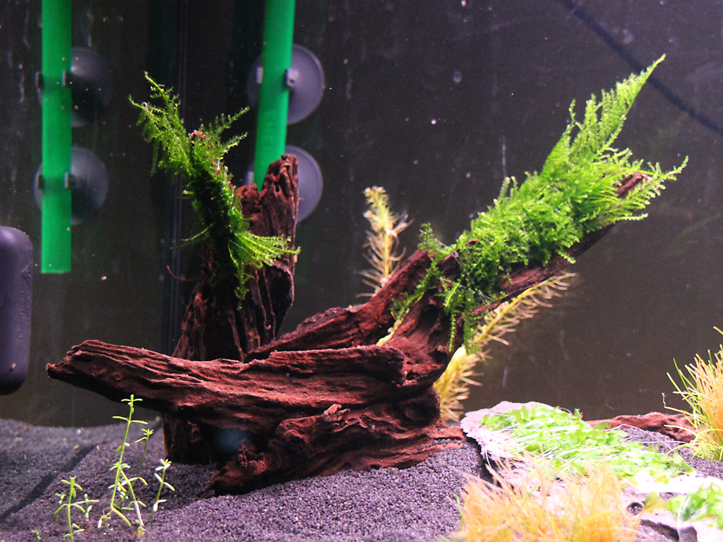 Ich würde an deiner Stelle auch noch etwas Moos auf Steine aufbinden (oder mit Putzgitter Moosplatten basteln) und die leere Stelle noch ein wenig begrünen. Garnelenkinder lieben Moos, da haben sie viel Oberfläche, die sie nach Mikroorganismen abgrasen können ...