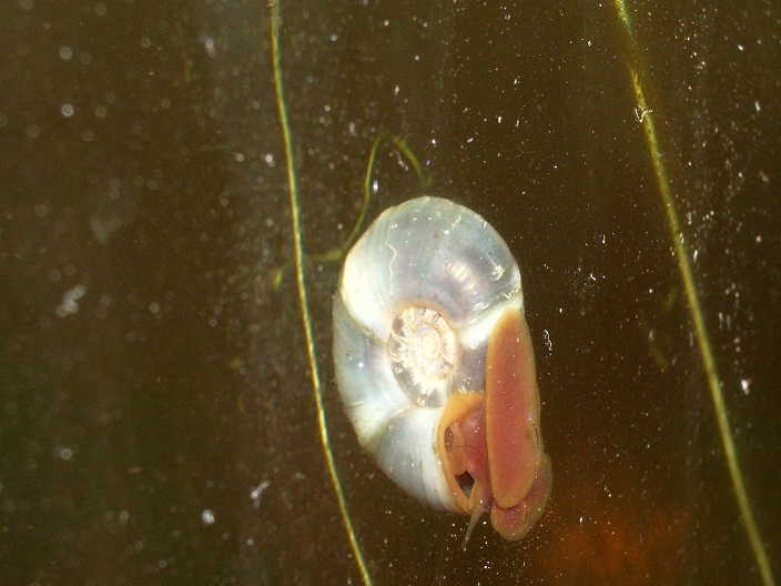 Es gibt bei uns Posthornschnecken in der Natur, Planorbarius corneus. Diese Tiere werden riesengroß (bis 3 oder 4 cm), und sie haben normalerweise eine braune Färbung und ein Hammerschlagmuster auf dem Häuschen. Es gab früher Aquarienpopulationen mit einem roten Körper, die sind aber schon länger verschollen oder zumindest nicht mehr sehr häufig zu finden.