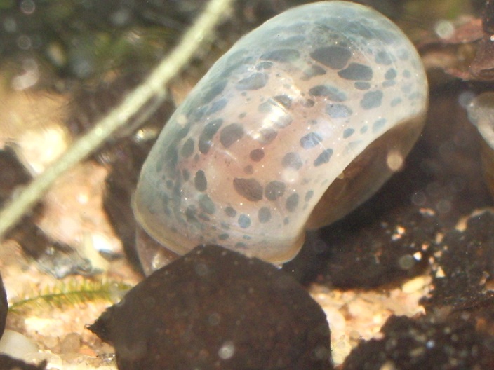 Dann gibt es noch Planorbella duryi (nicht sp., Fehler meinerseits, sorry ...). Die stammt ursprünglich aus Florida und hat sich in der Aquaristik weit verbreitet. Ursprünglich ist sie ebenfalls braun, wie ihre europäische Verwandte, aber mittlerweile gibt es sie in ein paar sehr schönen Farbschlägen. Ihr Gehäuse ist im Gegensatz zu P. corneus glatt, und sie wird nicht so groß. Bei 2 bis 2,5 cm ist da schon Schluss, und die meisten erreichen nicht einmal das.