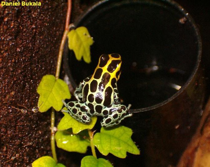 und hier mein Epipedobates anthonyi männchen... "papa" hat zwar etwas entgeister, aber ganz tapfer in der schwarzen fotofilmdose vor seinem gelege ausgeharrt, bis die "böse" kamera weg war! ein tapferes kerlchen.