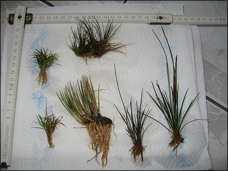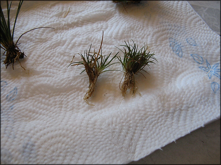 Es ist eine Pflanze mit mehreren Rosetten gewesen, die ich voneinander getrennt habe. Leider sind die Wurzeln bei Eriocaulen oft sehr brüchig, so auch bei dieser Art und es sind nur noch wenig Wurzeln vorhanden gewesen. Hoffentlich überlebt diese Pflanze.