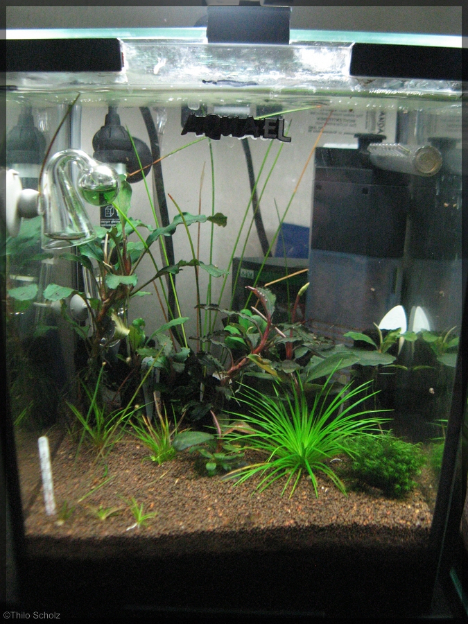 Hier noch ein weiteres Becken. Auf der linken Seite steht im Mittelteilnoch die größere Eriocaulon, die wohl eher Eleocharis ist.