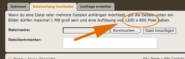 Ab sofort könnt Ihr Bilder im Format 1200 x 900 Pixel hochladen und im Beitrag zeigen,