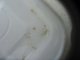 Naja, da ich in dem Wasser einige Schnecken bemerkt habe, dachte ich mir ich kippe das alte Wasser in einen durchsichtigen Behälter. Als ich das getan habe, der Schmodder sich gelegt hatte bekam ich einen Schreck...