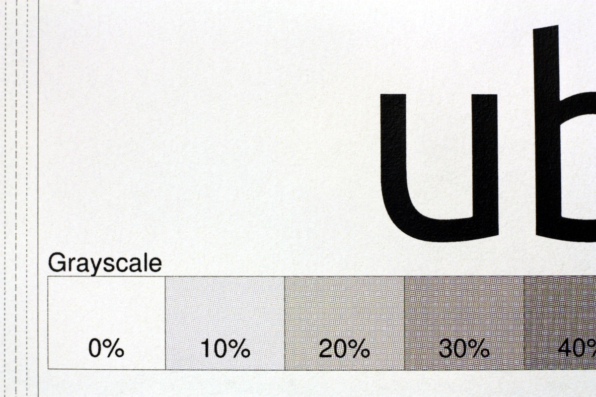 Der Ausschnitt ist mit einer EOS 450D mit 50mm Makro Objektiv gemacht worden damit man die Details genau sehen kann. Der Laserdrucker hat für die Darstellung der Graustufen nur die Möglichkeit verschiedene Raster auf das Papier zu bannen. Sind die Kamerasensoren nicht fein genug, oder pfuscht die Software am Bild herum erscheint das Muster einfach grau.