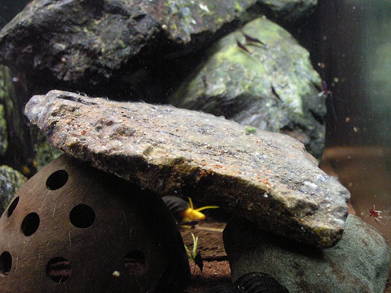 Ein Stein kam auch ins Kardinalbecken, hier sind sie (noch) nicht so rangegangen wie gestern an den AgarAgar-Futterstein.