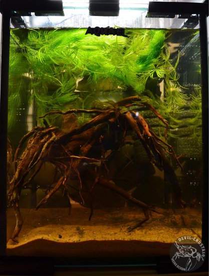 Da ich alleine durch die Wurzel dieses feine Geflecht vom Habitat nicht hinbekommen habe schwimmt oben noch Hornkraut.