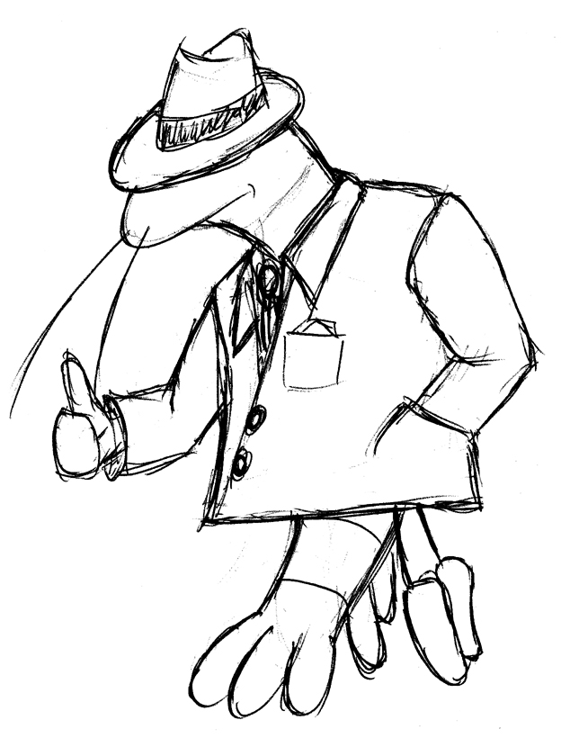 @Carsten: der Entwurf ist schon mal nicht schlecht, aber vom Kopf her ist´s nicht eindeutig einer Garnele zuzuordnen. Da fehlen wirklich noch Fühler um deutlich zu machen, um was es geht und ein bisschen Äuglein, die irgendwie frech gucken, wären fein :). Vielleicht kann man die so halb unterm Hut vorgucken lassen?