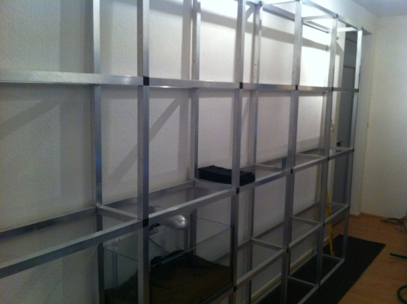 Und wo gibt's das Alu-Regal und hast du ne Platte unter die Aquarien gemacht? *gg*