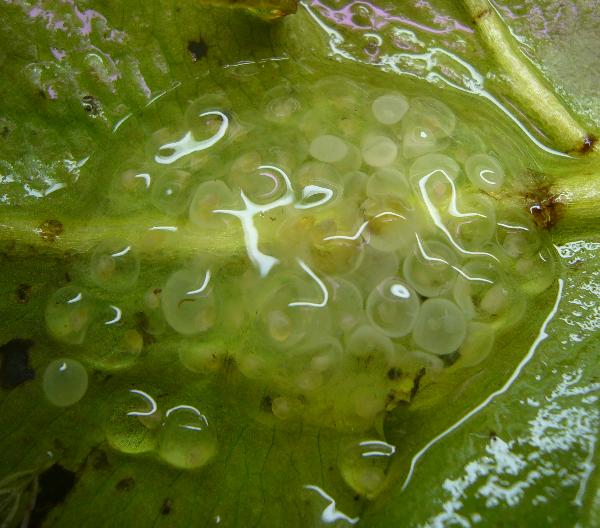 Die Eier werden in gallertigen Paketen an Pflanzenteile geklebt. Bevorzugt werden die Schwimmblätter von Seerosen oder schwimmender Hornfarn. Selten nutzen die Tiere Stängel von Bacopa, Vallisnerien oder Javafarn als Laichsubstrat. Fehelen Pflanzen ganz werden auch Steine oder Holz genutzt.