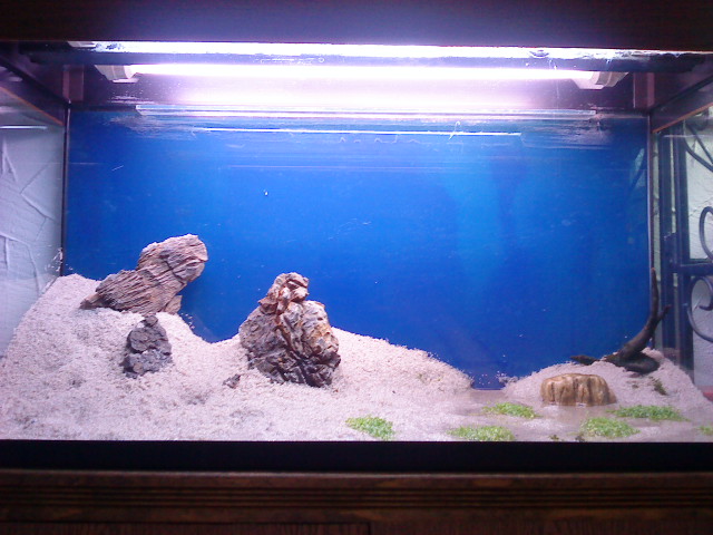 also die Baumstämme habe ich mir verkniffen. Das schaut einfach nicht aus. Ich hab aber am Sonntag mal angefangen, das Scape zu gestalten. Natürlich konnte ich es nicht lassen und habe das 112l Teilchen genommen...