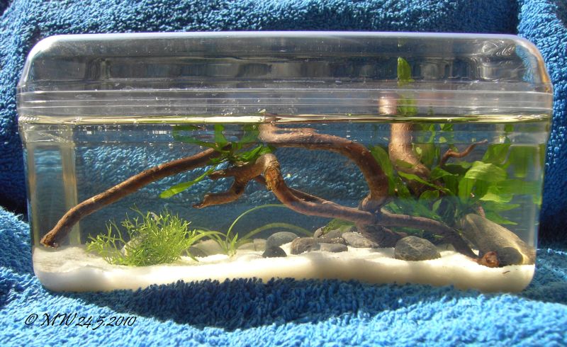 Ausserdem sollte so eine Küvette nicht zu groß sein, denn sobald die Tiere nach links und rechts Ausweichmöglichkeiten haben, muß man mit der Kamera wieder hinterher, was ein Arbeiten mit Stativ auch ziemlich unmöglich macht.