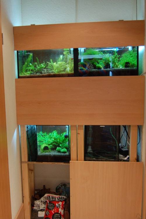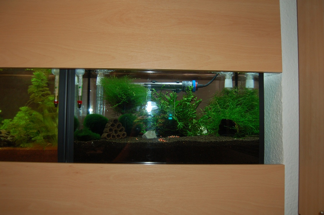 Jetzt auch mit Verkleidung. Nur Oben links sind noch Untermieter in Form eines Rudel Guppys. Aber auf das Fertige Teil erst mal ein Bier.