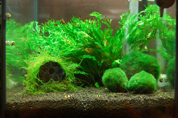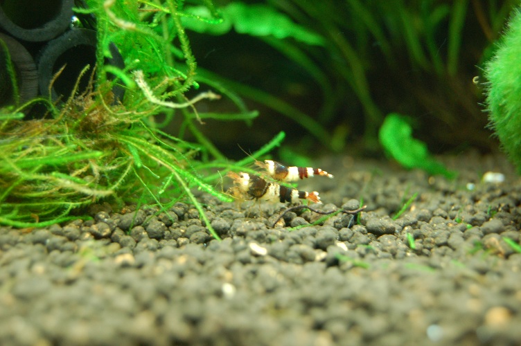 Hier ein Foto von meinem Garnelenbecken inklusive der Bewohner. Habe Heute zum ersten Mal Ebi Dama von Shirakura gefüttert. Ich war echt Erstaunt... Innerhalb von 2 Minuten tümmelten sich alle Garnelen im vorderen Bereich und "rauften" um das Futter. Die kamen ja förmlich angelaufen... Mit den JBL Kugeln bei meinem ersten Garnelen Versuch war das nie so extrem. Ich bin echt begeistert.