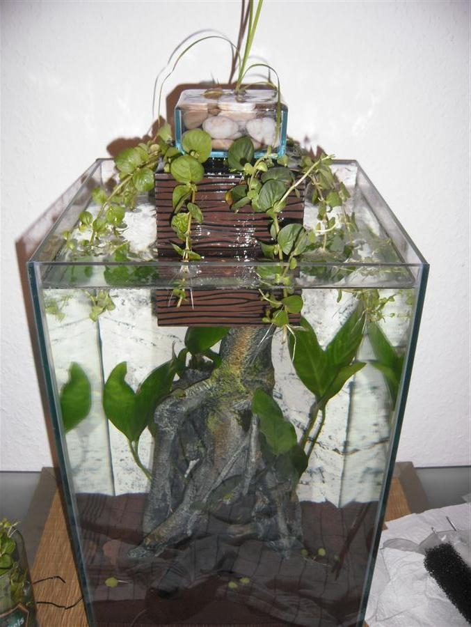 Also das Becken taugt soweit, wenn man mit dem Licht an- und ausknipsen leben kann und man einen Fauler-Aquarianer-Filter einbaut ;) Allerdings hab ich das gute Stück vor 3 Wochen komplett mit Einrichtung an eine Freundin weitergegeben die sich wohl irgendwie mit dem Garnelenvirus infiziert hat :happy: