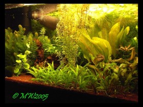 Es ist ein Eheim ecco mit diesem Bügel, den man anfangs immer runter klappen muss, damit Wasser in den Filter läuft. Von Anfang an klappte das nie so recht, meist blubberte Luft aus dem Ansaugrohr und ich brauchte ein paar Anläufe oder, der bessere Fall, mein Mann übernahm das für mich.