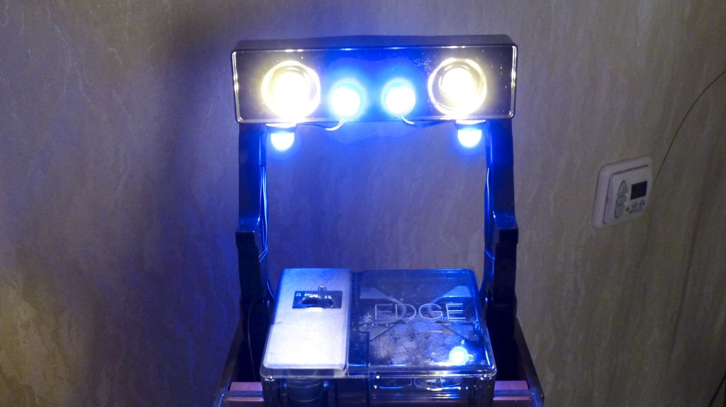Als Beleuchtung sollen 3 Licht Quellen zum Einsatz kommen. Zwei basierend auf LED (4x ca. 3000-6000K & 4x 6000-9000K) und eine weitere in blau (LED). Nachts werden dann nur die weißen LED's abgeschaltet. Blau ist immer an (wg. der Pflanzen).
