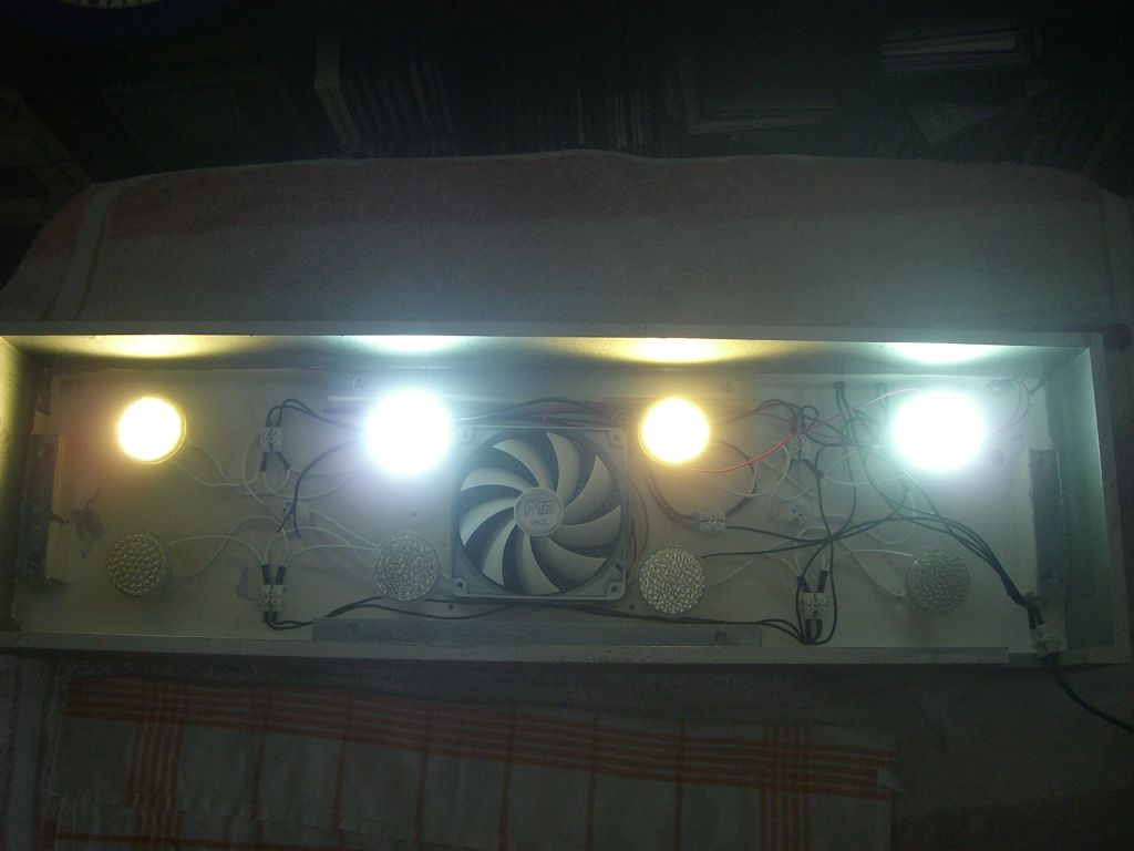Die blauen LED-Spots habe ich angeschliffen und eine Diffusorplatte unter die Beleuchtung montiert.