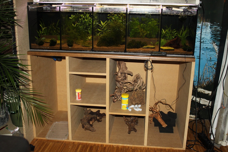 Den Unterschrank hab ich passend zum Becken selbst gebaut, da ich den Auslass des Beckens berüchsichtigen musste.