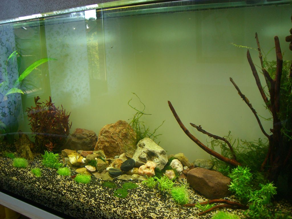 Nachdem das "neue" nun mehr als eine Woche mit vorhandenem Aquarienwasser eingelaufen ist, sind die Pflanzen und die ersten (wenigen) Bewohner eingezogen. Unser Forenmitglied NebelGeist war ja neugierig zu sehen, wie das ganze mit Pflanzen aussieht. Gut - die müssen natürlich noch wachsen, aber hier mal 3 Bilder...