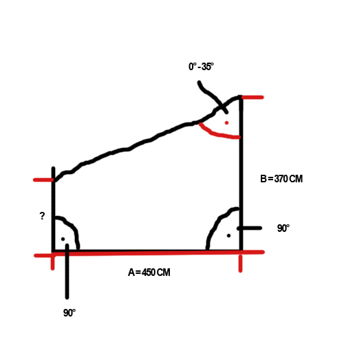 Die Markise kann waagerecht (0°) oder bis zu einem Winkel von 35° geneigt werden. Ich versuche die Höhe des Pfostens am Rand der Terasse zu berechnen. Die Markise läuft auf Schienen. Also 360 cm hoch sollte er nicht sein :) Mindestens 250 cm hoch, aber stimmt dann der Winkel noch (max 35°) ?