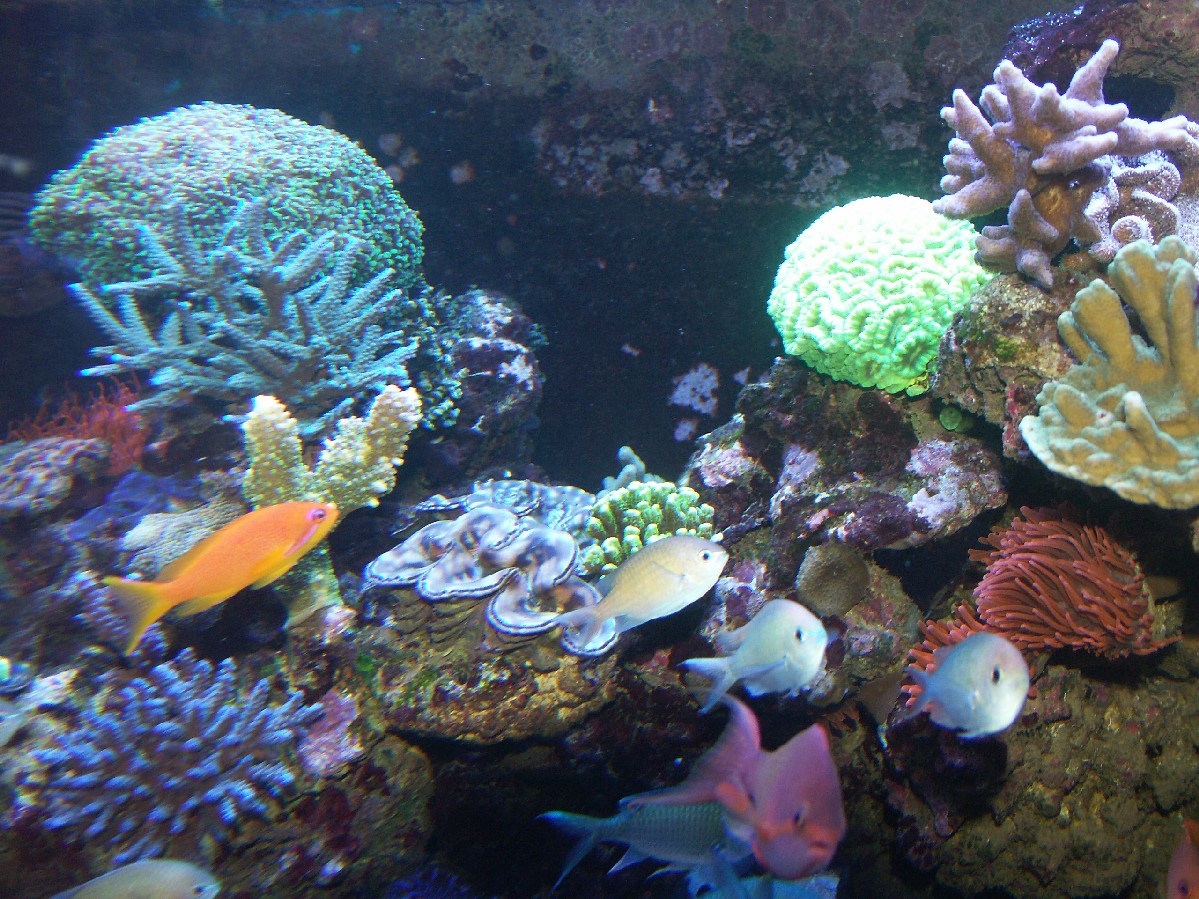 Die Weichkorallen sind zum großteil wieder ausgezogen und dafür mehr SPS, LPS und Muscheln nachgerückt.