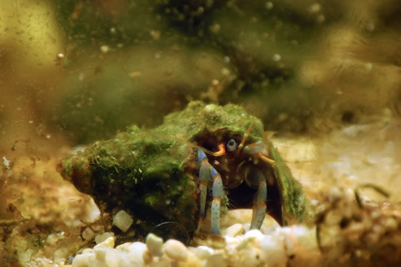 Ich habe einen Einsiedler (Clibanarius tricolor) der vor einem halben Jahr übel geshreddert wurde, von wem, keine Ahnung.