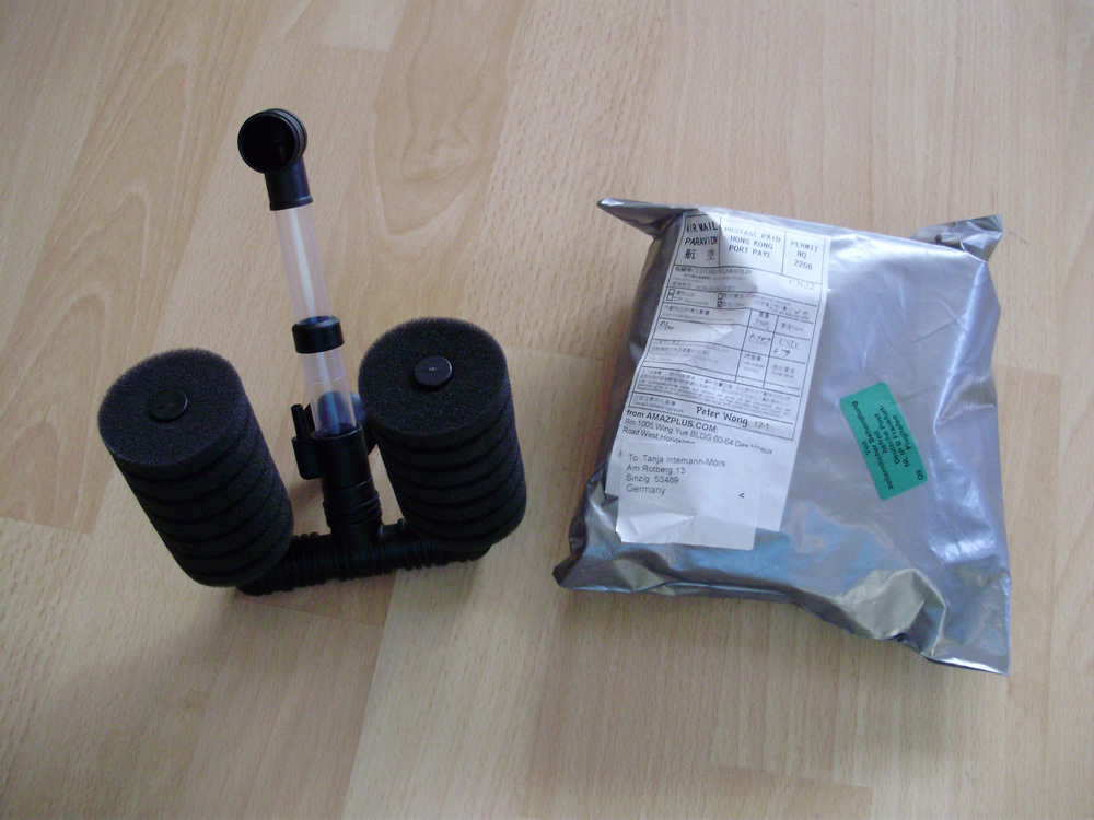 endlich sind die Doppel-Schwammfilter aus Hong Kong nach 3Wochen eingetroffen.
