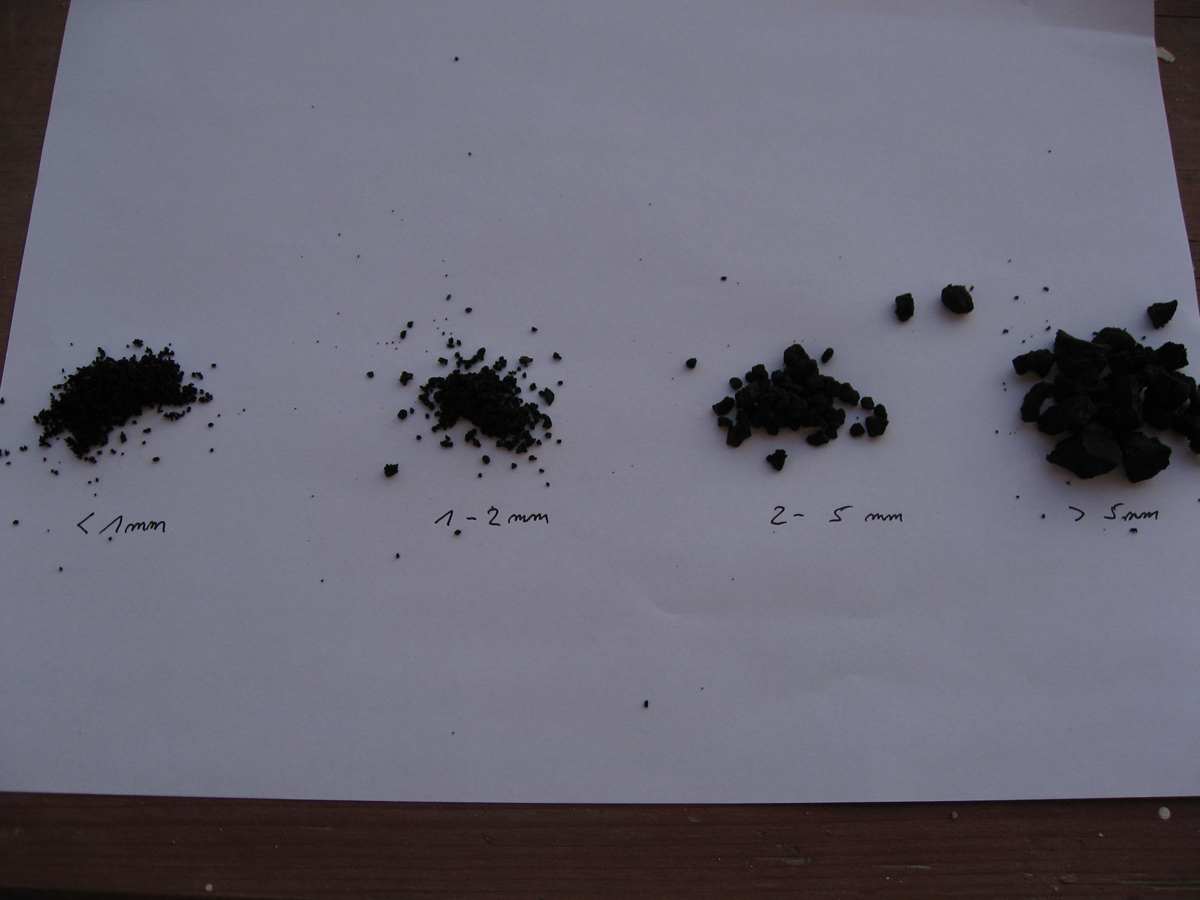 - mit dem 5mm Sieb getrennt in 1-5mm und >5mm...