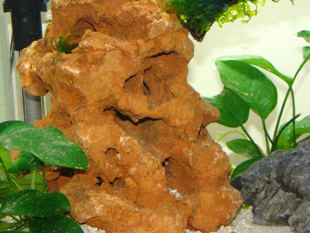 Die Steine habe ich aus einer GAertnerei. Bevor ich sie ins AQ gelegt habe, hatte ich ueber mehrere Tage mit Osmosewasser getestet, ob sie das Wasser aufhaerten bzw. Kupfer o.aehnliches absondern. Das war nicht der Fall. Die Tylos gehen schon drauf.