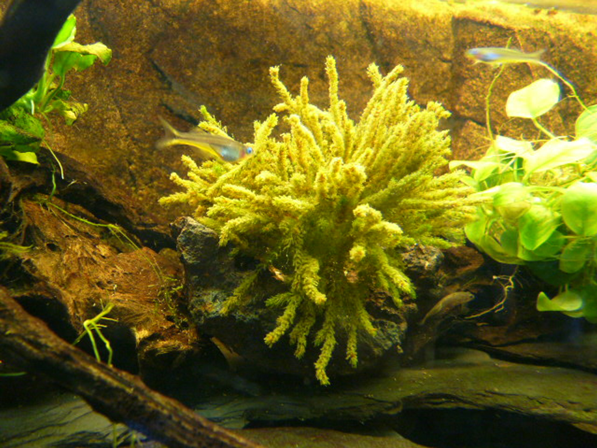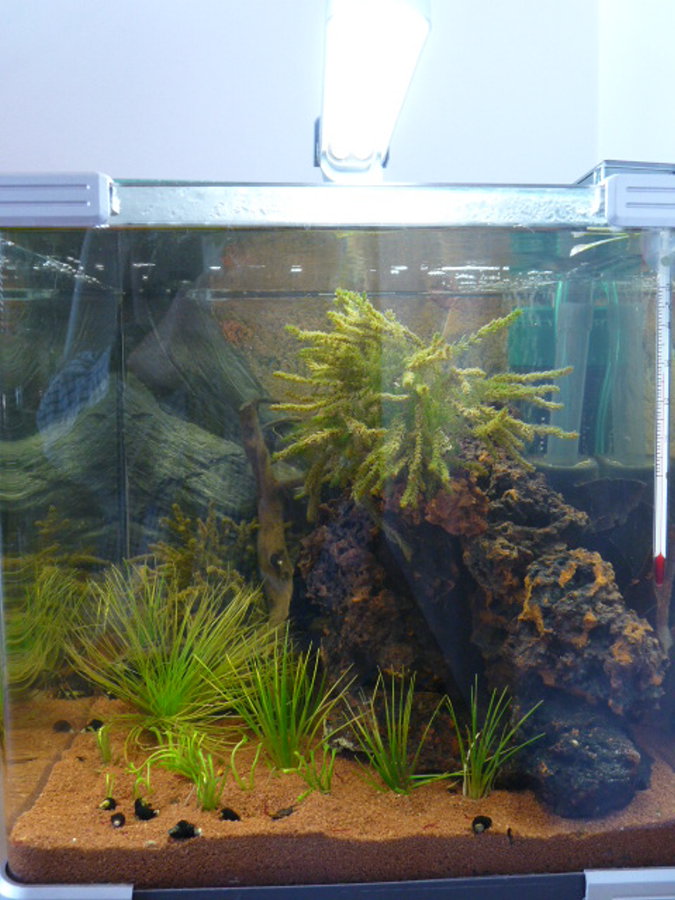 Alle Versuche im AQ scheiterten, da sie von den Tylos gefressen wurde. Auch bildeten sich nie Wurzeln und in den Bodengrund gesteckt löste sie sich nach ein paar Tagen auf, den Rest erledigten die Garnelen. Dann bekam ich den Hinweis, ich sollte sie mal aufbinden.