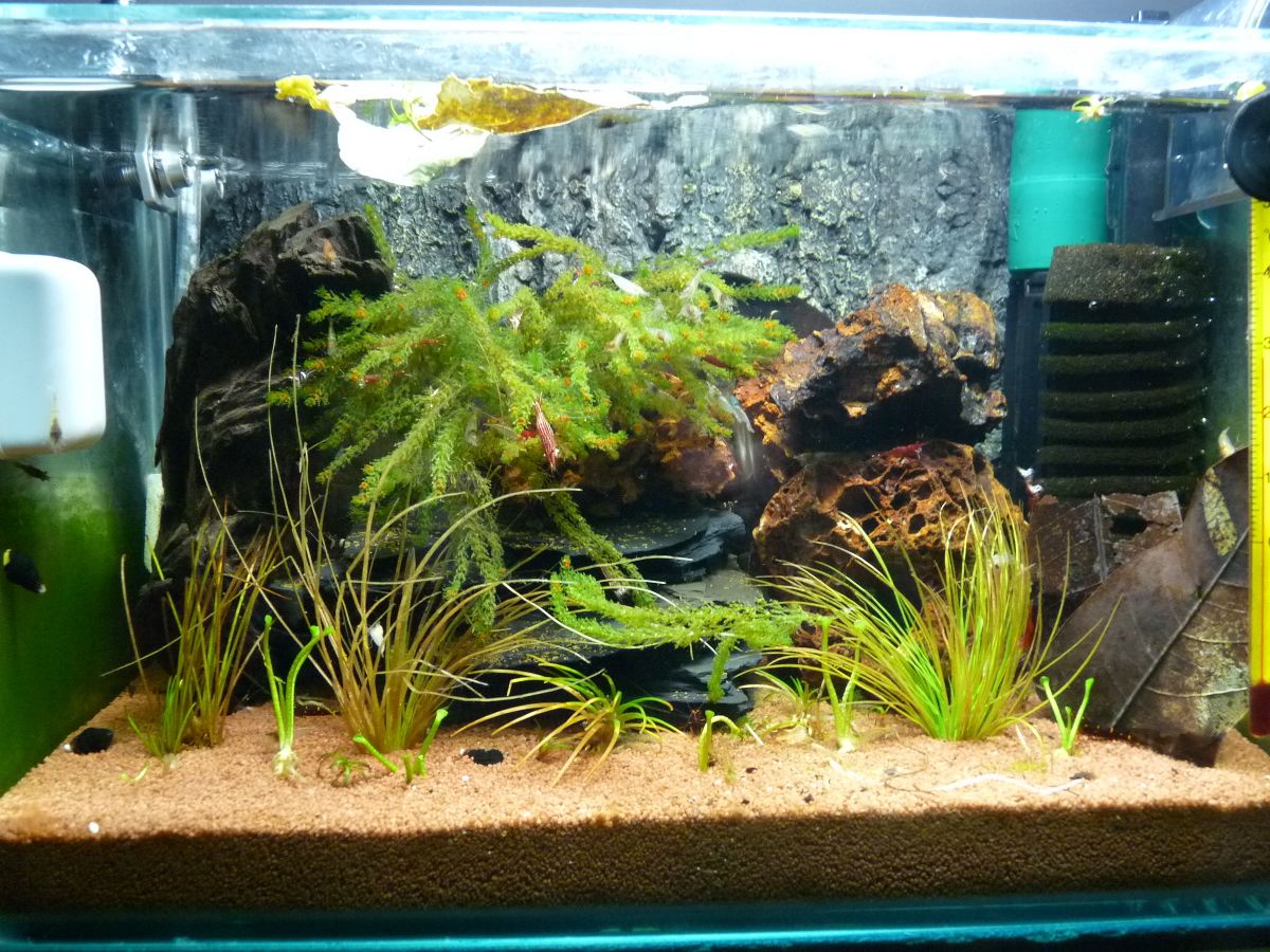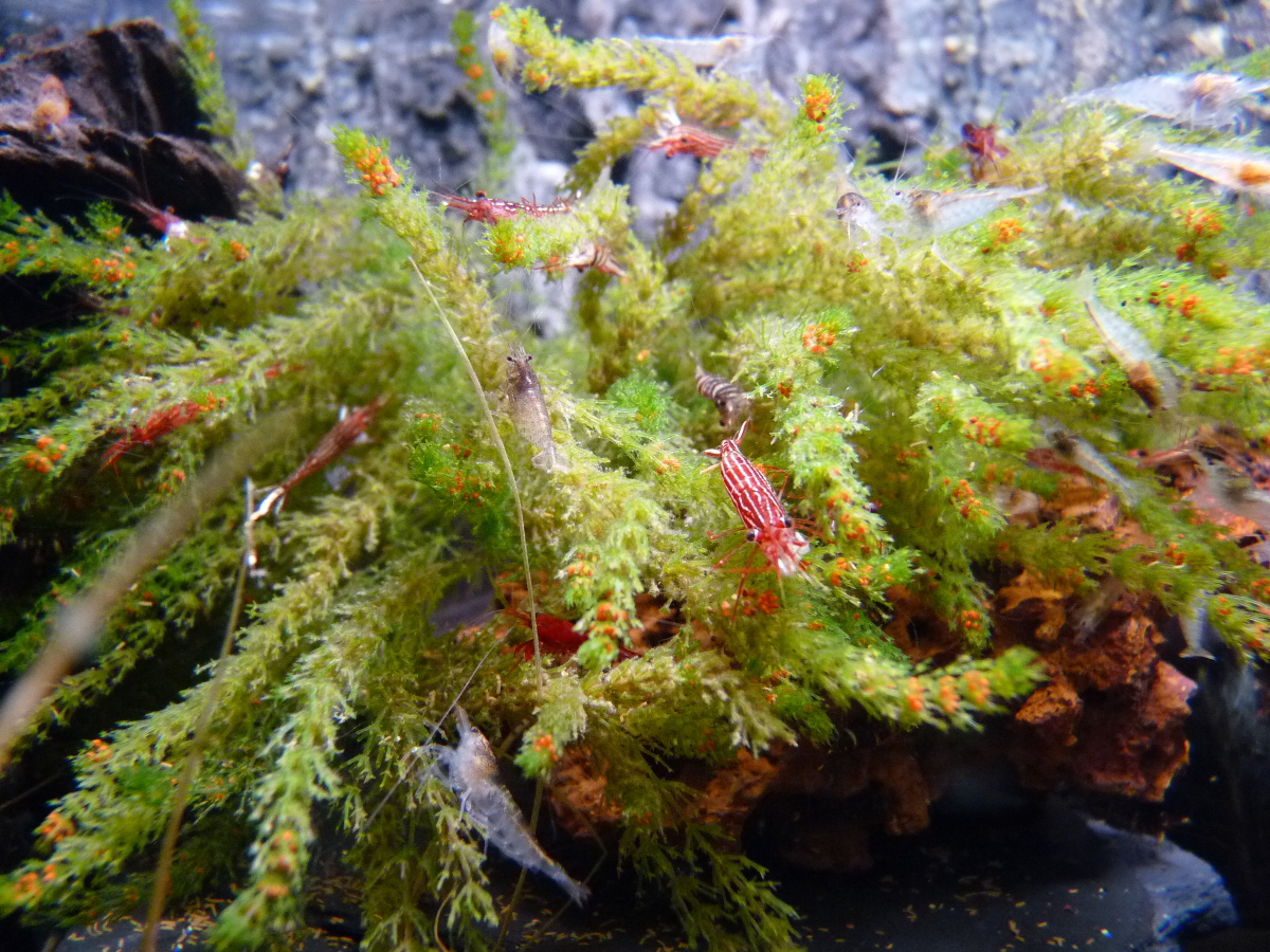 Von den MIni Tylos droht auch keine Gefahr ! Ob sich der "Mulm" nachbildet oder ob die Pflanze letztendlich doch von den Garnelen gefressen wird, werden die nächsten Wochen zeigen.
