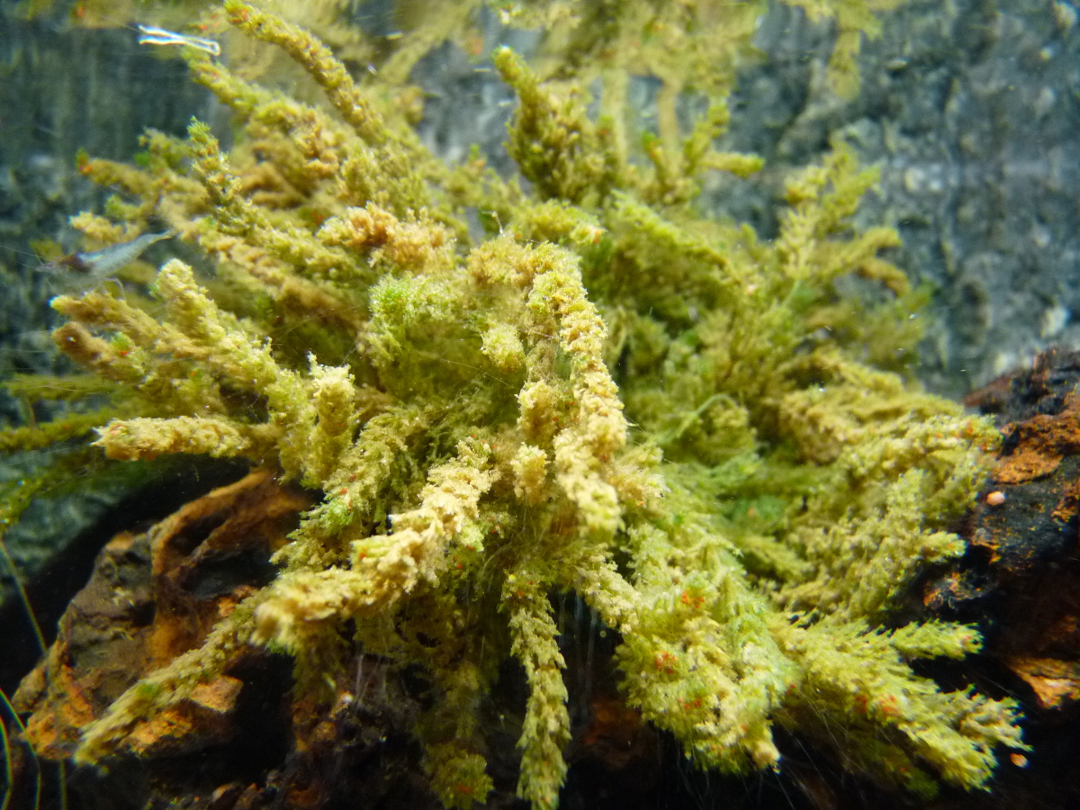 Nun habe ich nach Jahren mal wieder welche bekommen und habe sie auf versch. Sulawesi Steine teilweise aufgebunden, oder mir Korallenkleber befestigt. Dabei machte ich eine sehr interessante Beobachtung. Die Garnele weiden die Pflanze ab. Es sitzt wie eine Art Mulm darauf und der wird heruntergefressen. So habe ich dann die Algen immer ausgetauscht, da mein 25L Cube noch nicht besetzt ist. Komischweise gehen die Blaufüsse & Ensiferas im Grundelbecken nicht an die Pflanze.