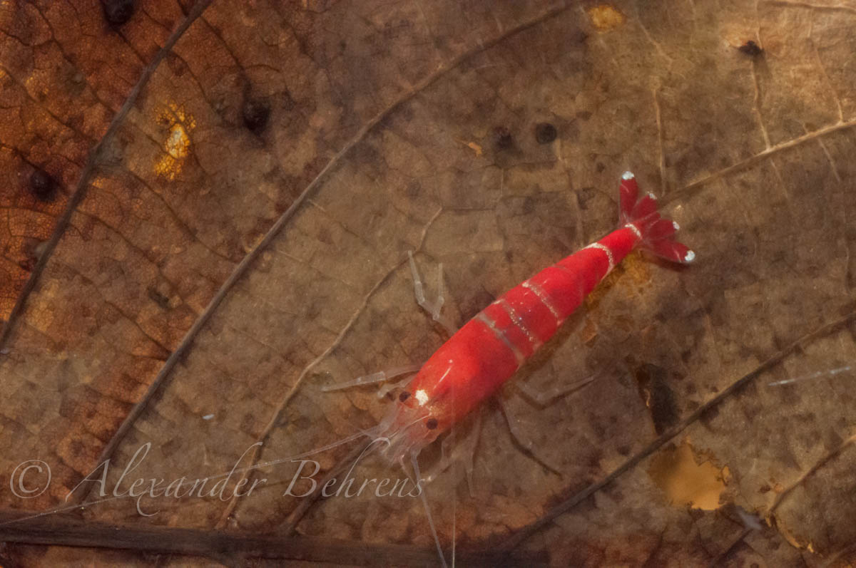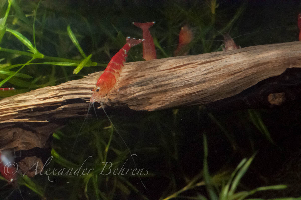 ich verwende eine Nikon D90. Objektiv Nikkor Micro 60mm f/2.8 (das alte Model). Als Blitz kommt der eingebaute Blitz (als Masterblitz) und ein SB 600 (als Slave) zum Einsatz. Den Blitz lege ich häufig auf die Abdeckscheibe ein bisschen Rechts oder Links von den Garnelen.