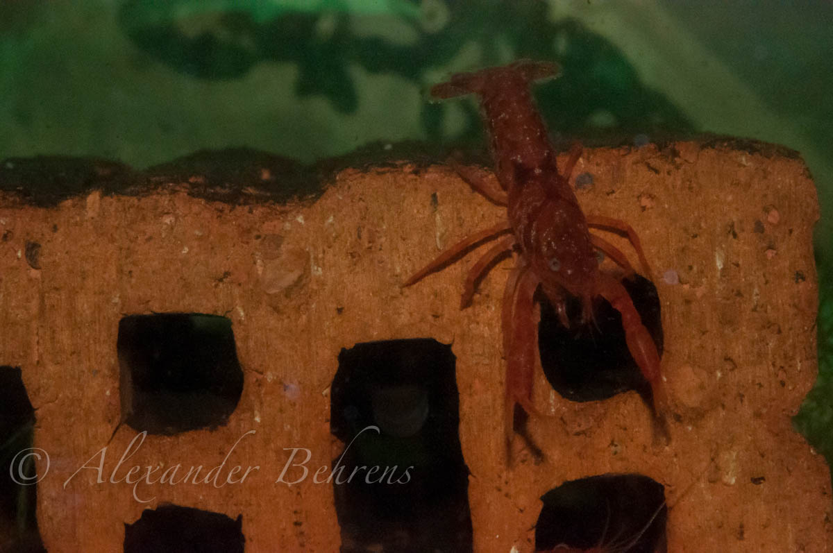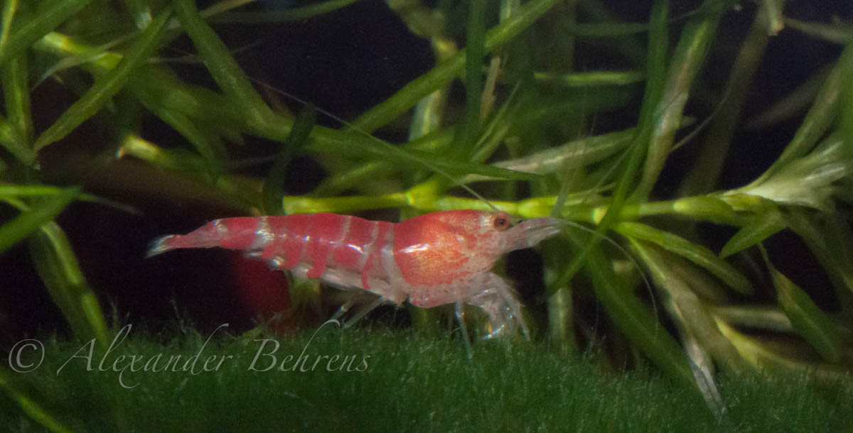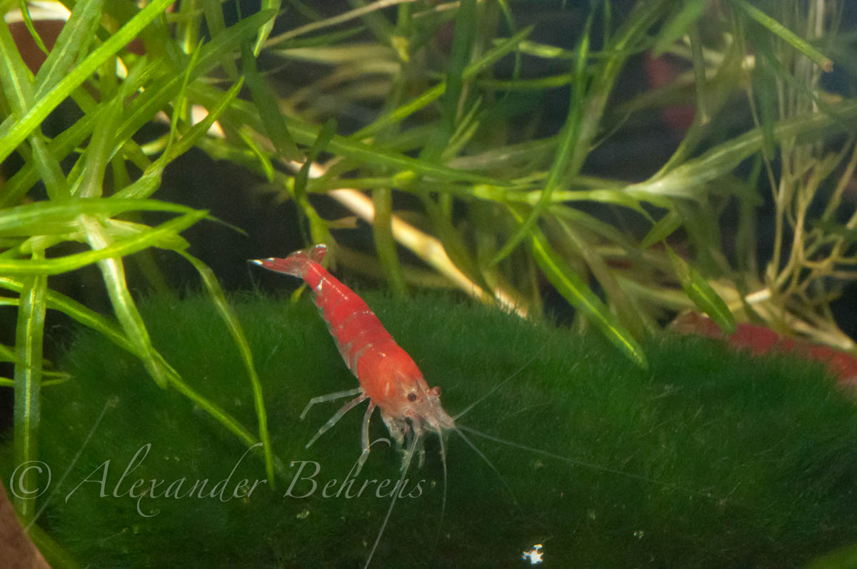 ich verwende eine Nikon D90. Objektiv Nikkor Micro 60mm f/2.8 (das alte Model). Als Blitz kommt der eingebaute Blitz (als Masterblitz) und ein SB 600 (als Slave) zum Einsatz. Den Blitz lege ich häufig auf die Abdeckscheibe ein bisschen Rechts oder Links von den Garnelen.