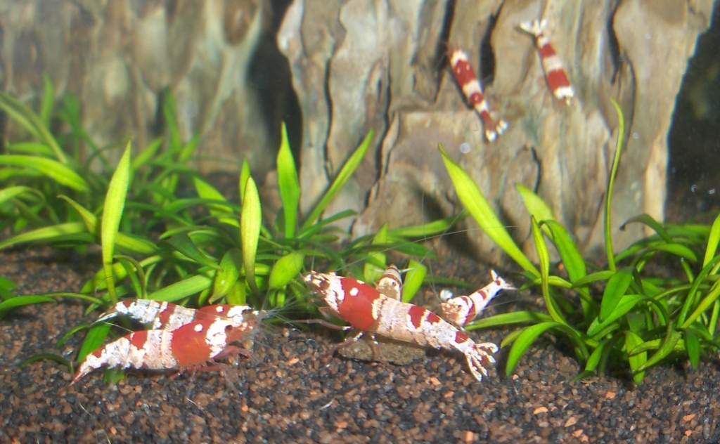 Und meine neuen Bewohner(seit März) rote Tigergarnelen mit Nachwuchs: