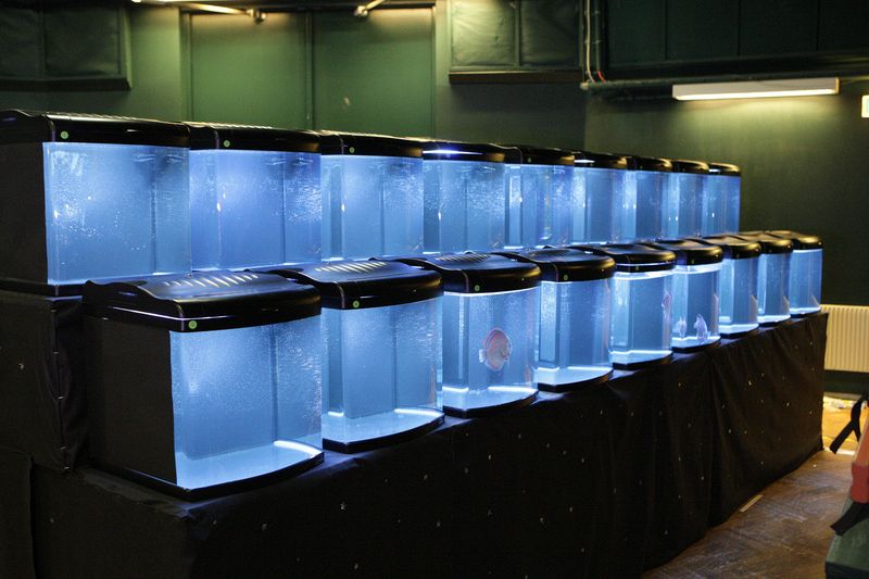 Es werden ca. 60 traditionelle Aquarien ausgestellt, ca. 40 Nanoaquarien, und ungefähr 60 Diskusaquarien.