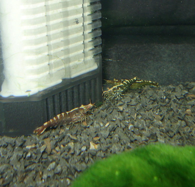 Vor ca. 2 Jahren fielen solch gezeichneten Tiere in einer bunten ??? Garnelensuppe auf und da ich ein Becken frei hatte, wurden sie mal da rein gesetzt um zu sehen was dabei raus kommt. Es stellte sich sehr schnell raus, das diese Zeichnung erbfest ist, doch die Tiere fallen in verschiedenen Farben, wobei der braun-grüne Ton schon dominant ist.