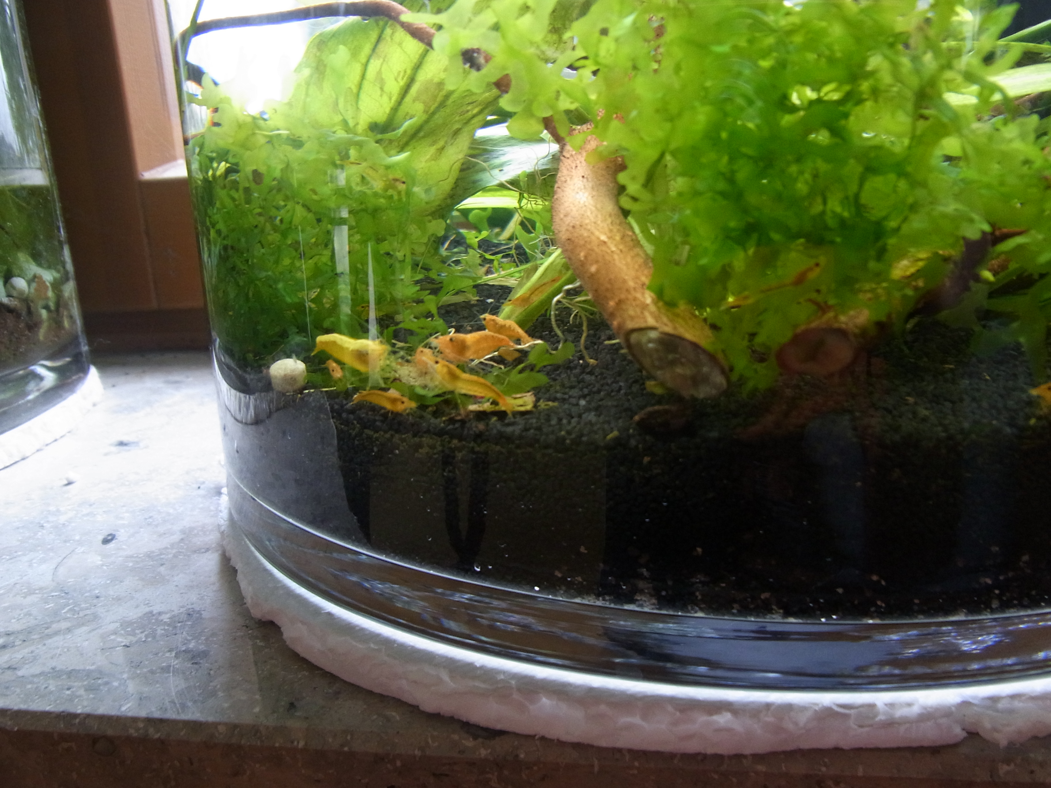 Was mich bei den orangen ganz besonders freut - dass sie orange geblieben sind und in meinem Wasser nicht rot wurden wie die ersten Neocaridina "orange", die ich mal hatte ...