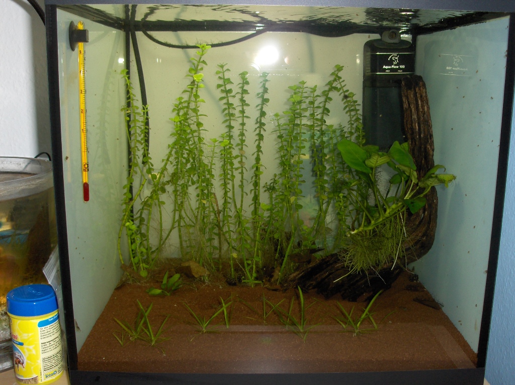 Dein Würfel ist jetzt nicht gaaanz so mein Geschmack, ich mag's gern etwas urwaldiger, aber erstens kann das ja noch kommen, und zweitens muss das Becken ja in erster Linien den Tieren gefallen und dann dir :).