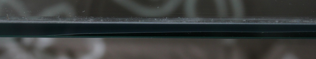 An der Front ist die Bodenscheibe mit der Frontscheibe auf ca. 23cm nur auf halber Glasstärke verklebt. :o